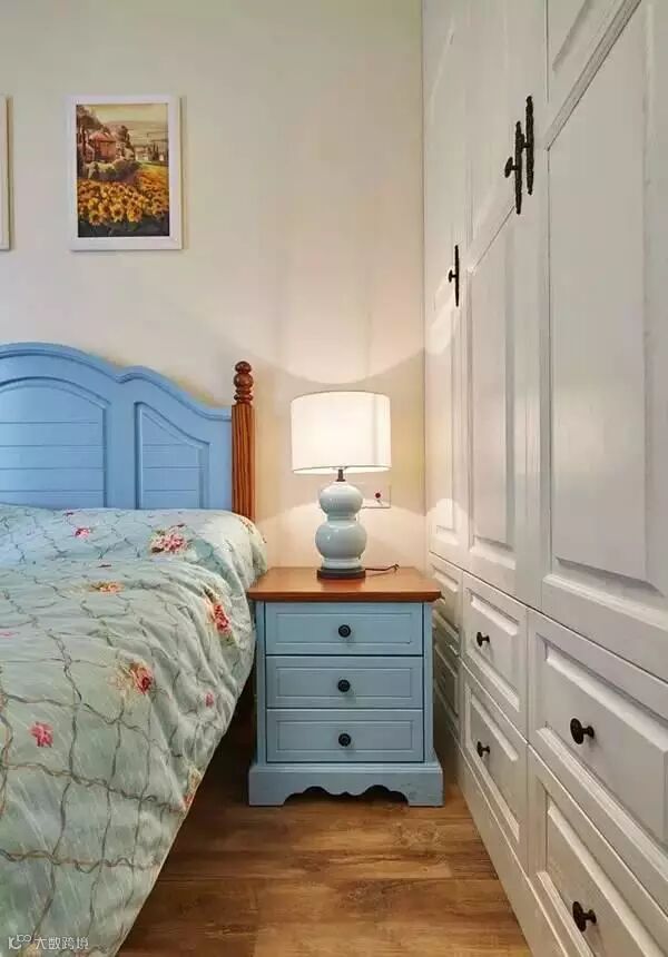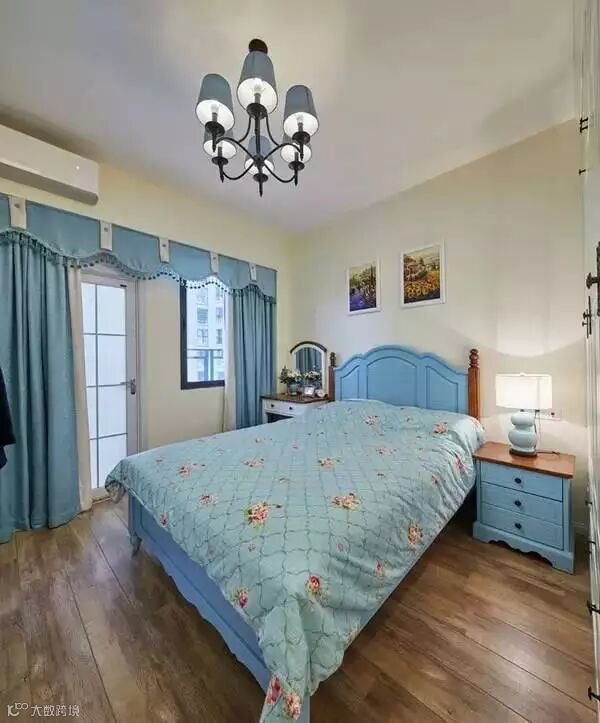 卧室选了蓝色的床、窗帘、床品,有大海的感觉。