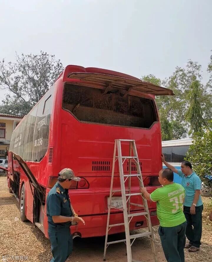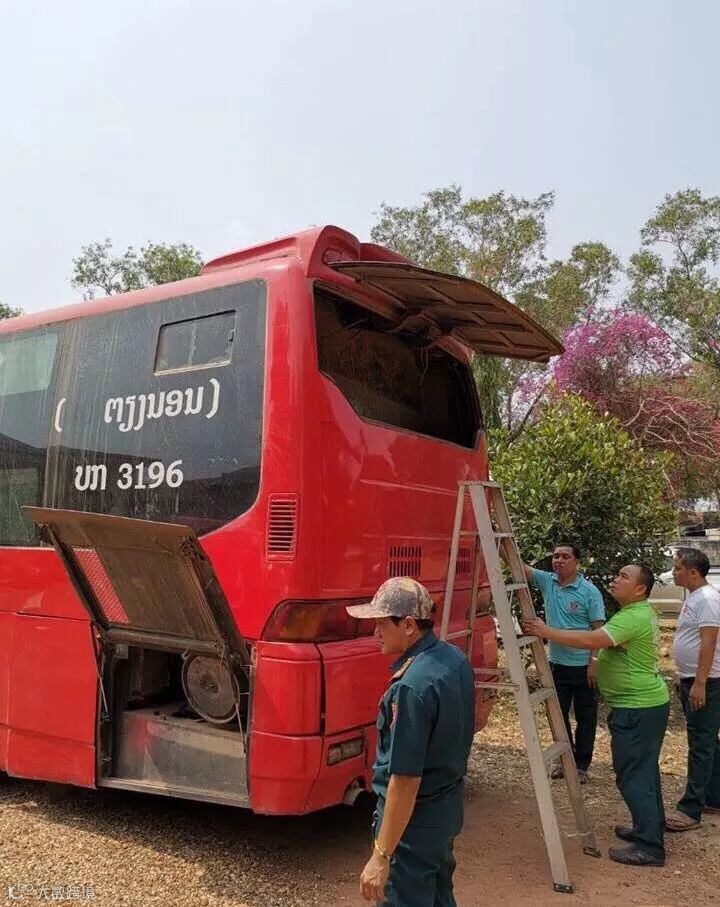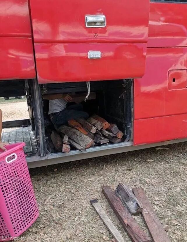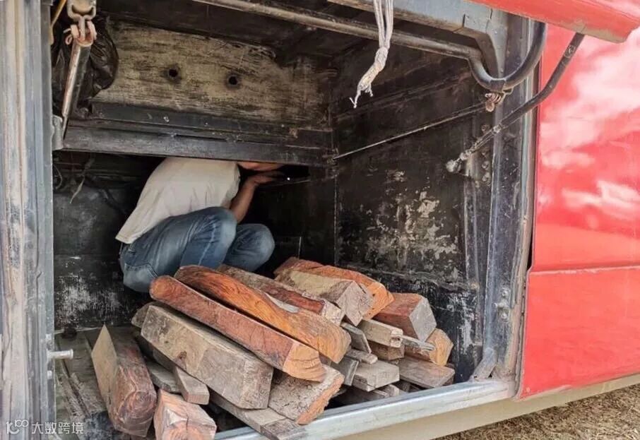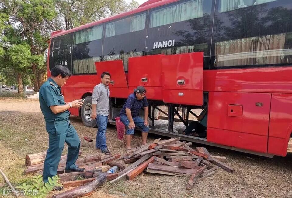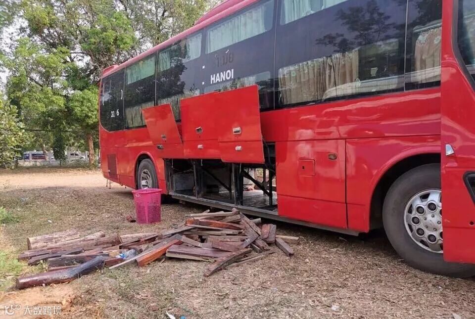 老挝警署查出一辆来往老挝与越南的旅游大巴中装载有禁止出口的木材大红酸枝,司机将木材装在车辆下方放置行李的地方,企图蒙混过关将其运入越南境内。