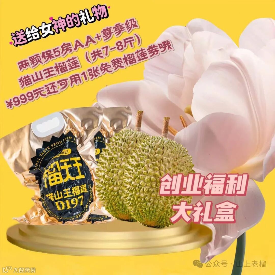 3月女神节,只要购买1份999元超级福利创业礼盒,就可成为榴莲团长,并且1人可领3张100元榴莲券,购礼盒还可直接抵扣。