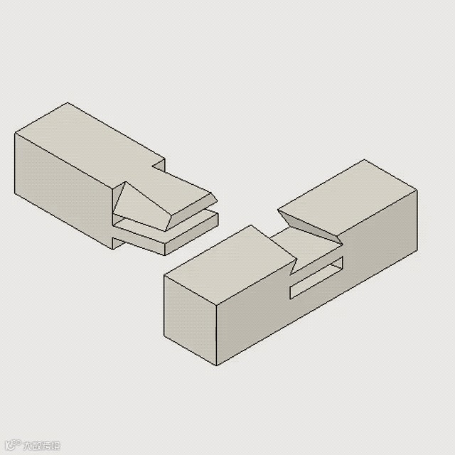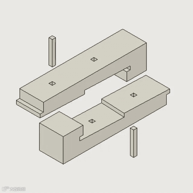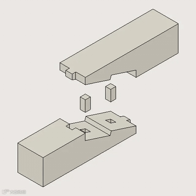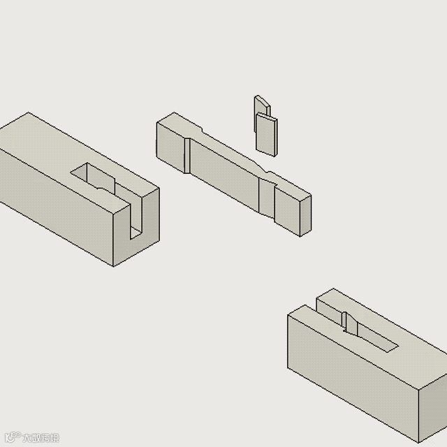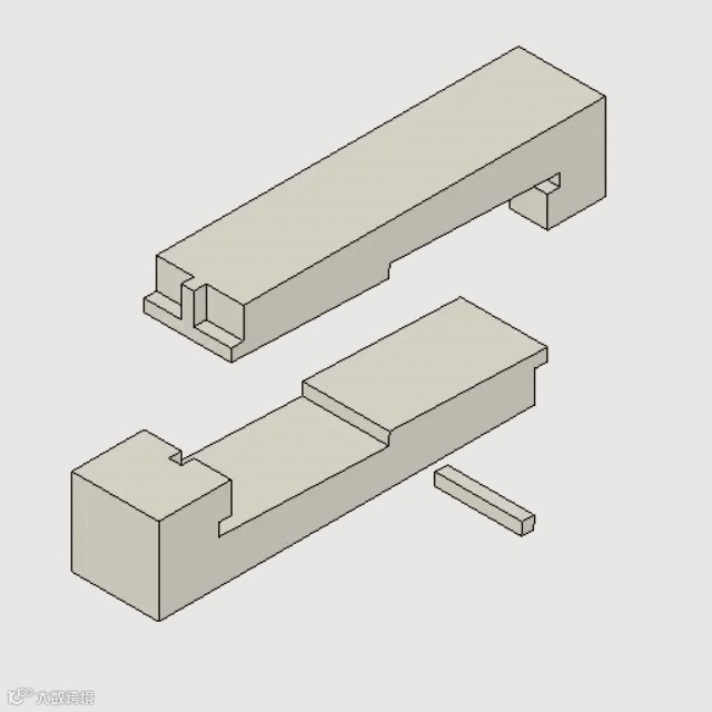 榫卯构件中凸出部分称为榫,凹入部分则称为卯。