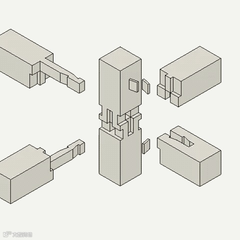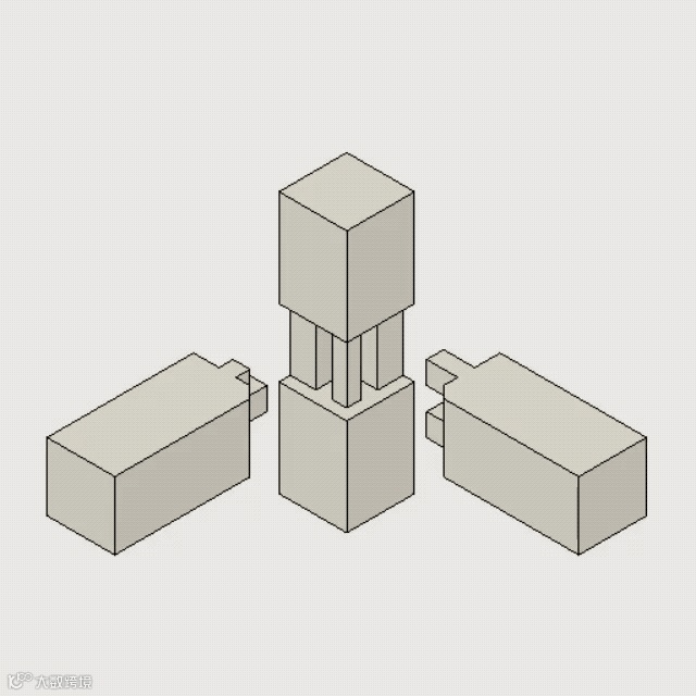 榫卯的神奇之处在于,它能通过各种不同的契合手法,让结构中每一个小单元都被稳定的固定住,因而不需要一枚铁钉,就能够搭建起一座座宏伟的建筑。