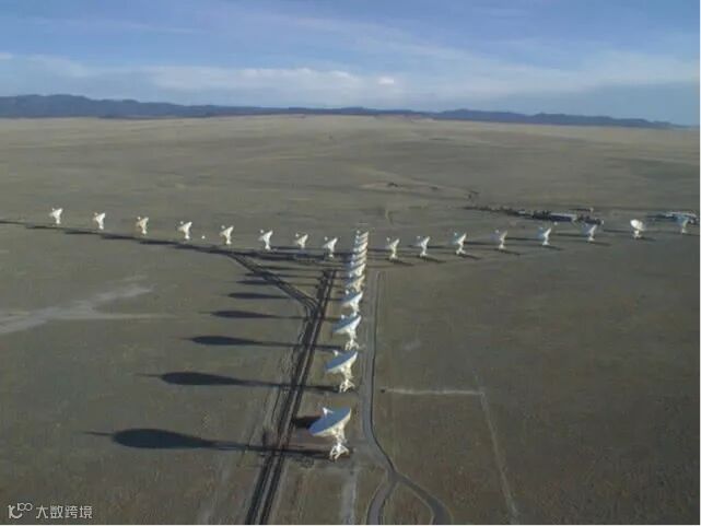 图注:美国的甚大天线阵(VLA)。每个天线重230吨,架设在铁轨上,可以移动。
