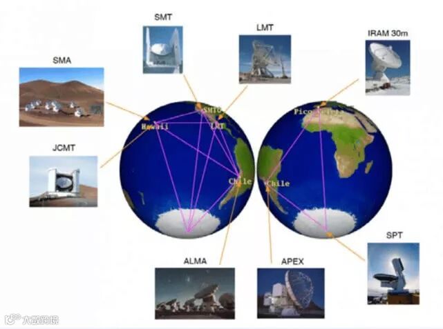 文章开始我们提到,天文学家为了观测黑洞视界边缘上的物理过程,动用了分布在全球的8座毫米/亚毫米波射电望远镜,这些望远镜组成了一个虚拟的,口径接近整个地球的望远镜,这座虚拟的望远镜,称为“事件视界望远镜”。