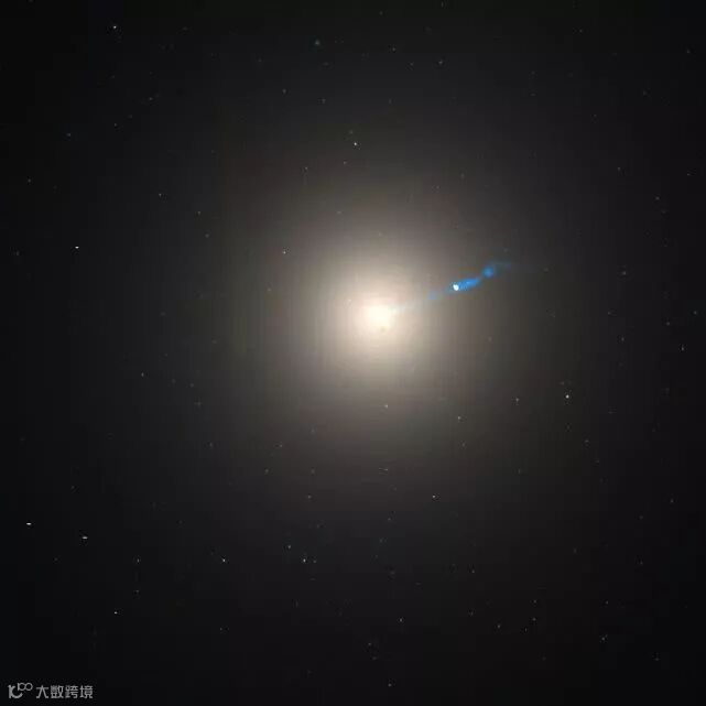 图注:从M87星系中心发出的喷流,喷流的长度可达5000光年。科学研究表明,喷流是由中心旋转的大质量黑洞所驱动。