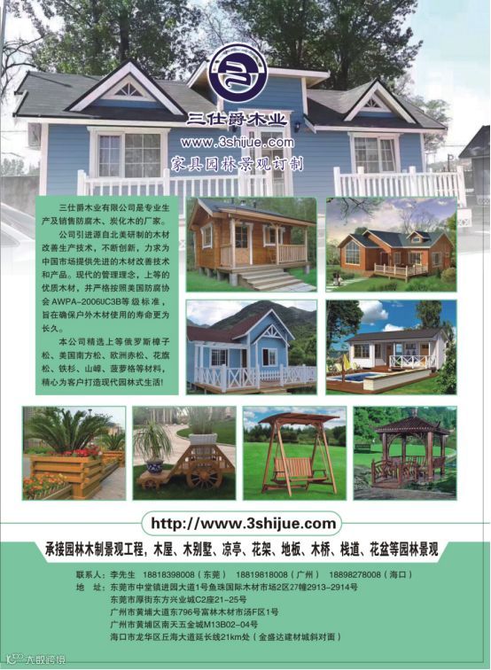 三仕爵木业有限公司是专业生产及销售防腐木、炭化木的厂家。公司引进源自北美研制的木材改善生产技术,不断创新,力求为中国市场提供先进的木材改善技术和产品。现代的管理理念,上等的优质木材,并严格按照美国防腐协会AWPA-2006 UC3B等级标准,旨在确保户外木材使用寿命更为长久。