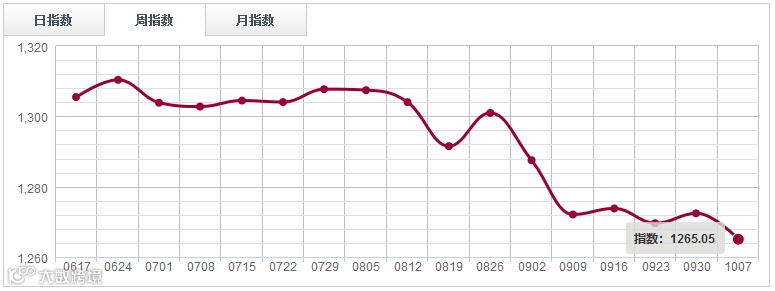 红木分类指数止涨回跌,本周收于1265.05点,涨0.58%。其中鱼珠红木指数下跌1.19%;福人红木指数下跌0.07%;大西南红木指数下跌1.18%。