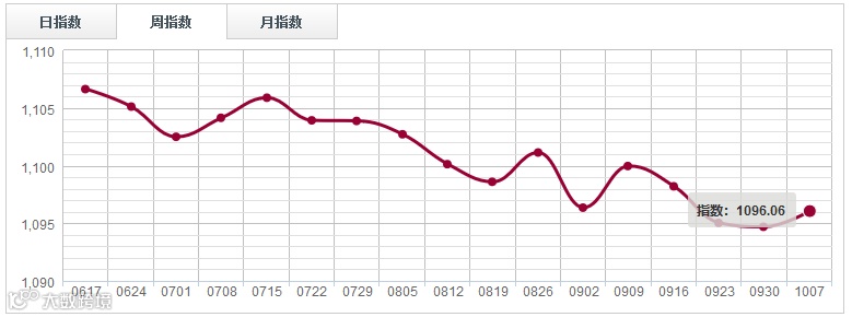 本周原木市场维持弱稳态势,周指数报1096.06点,周环比涨1.36点,涨幅0.12%。三大原木指数两涨一跌,其中四川大西南和上海福人周指数涨0.41%、0.23%,广东鱼珠环比跌0.04%。