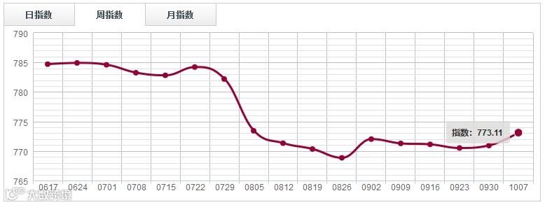 锯材分类指数延续上涨态势,本周报收773.11点,涨0.28%。各大市场指数全线上升,其中鱼珠锯材指数、福人锯材指数分别上涨0.15%、0.06%;大西南锯材指数、南康锯材指数上升0.92%、0.19%。