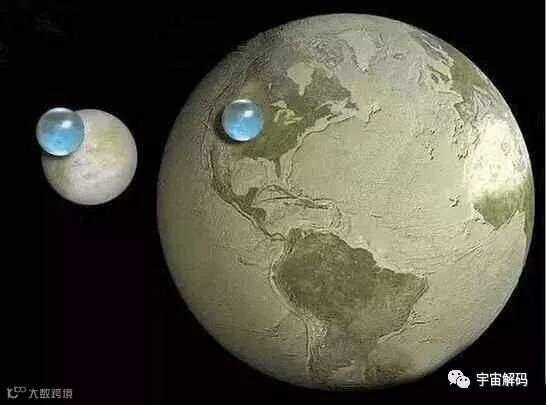 左是木星卫星「木卫二」(Europa)上头的水量,右则是地球上的水量。