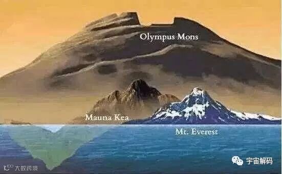 我们都知道珠穆朗玛峰是世界上最高的山,但若是把火星上的奥林帕斯山拿来作比较的话,珠穆朗玛峰似乎都变得不值一提了,所以这也是科学家不敢公布的真相。奥林帕斯山有27公里高,几乎是圣母峰的3倍高,也比毛纳基火山(从水底山脚计算)的2倍还要高。奥林帕斯山已经高耸进火星的大气层了,它的基底有550公里那么宽广,意思也就是,如果你站在火山口来看的话,它的山脚会一路绵延超过地平线。