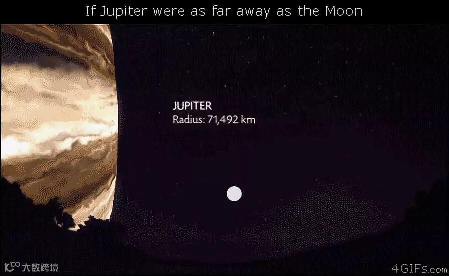 木星的体积也不小,只是距离我们太远了。但如果木星距离我们就跟月球一样近的话,我们会看到......心脏根本就不够用啊!仰望天空时太惊悚了吧!