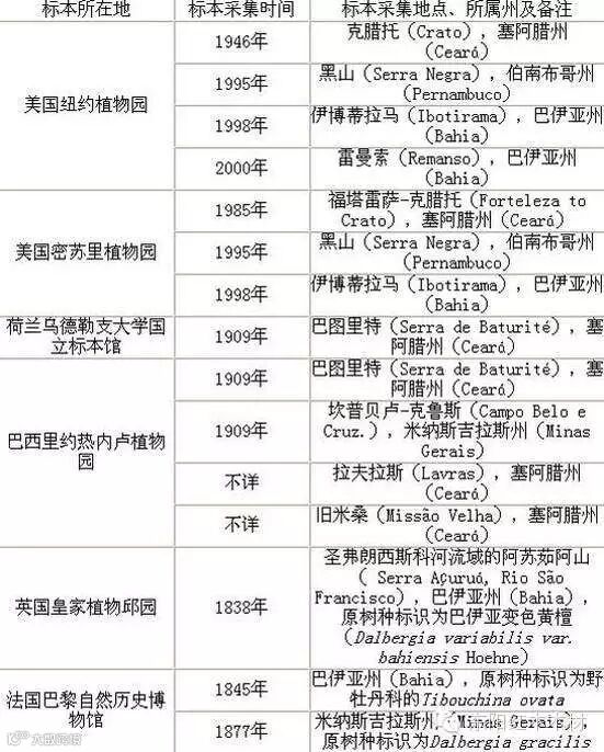 图1 塞州黄檀(Dalbergia cearensis)标本,杜基于1946年采集于塞阿腊州克腊托