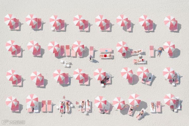 粉白相间的遮阳伞