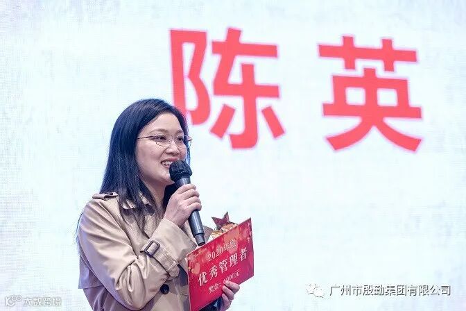 (董事长为优秀管理者颁奖,获奖者陈英发表感言)
