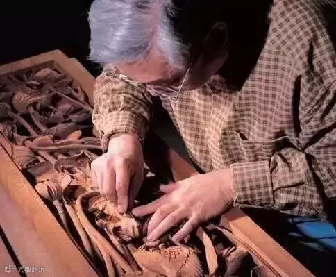 雕花的花板需要进行刮花磨,一般都是用钢做的刮刀,手工一道一道的刮光滑。