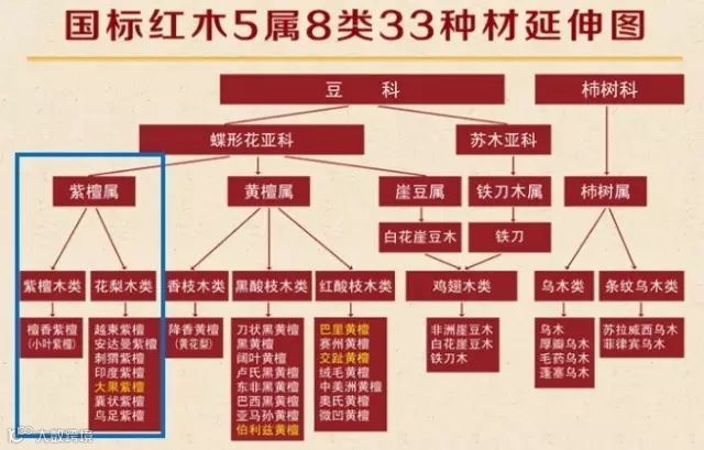 在红木《国标》中可见的紫檀属类木材分为两类,一是紫檀木类,二是花梨木类。其中: