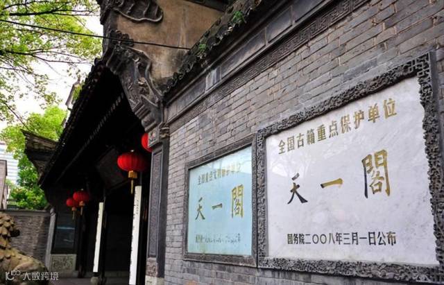 天一阁之名,取义于汉郑玄《易经注》中“天一生水”之说,因为火是藏书楼最大的祸患,而“天一生水”,可以以水克火,所以取名“天一阁”。书阁是硬山顶重楼式,面阔、进深各有六间,前后有长廊相互沟通。楼前有“天一池”,引水入池,蓄水以防火。
