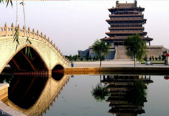 登鹳雀楼俯瞰,风景秀丽,气势雄伟,唐宋之际,文人雅士常为之作诗。