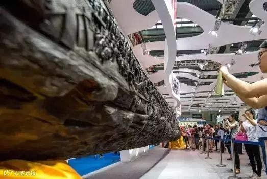 据悉,此乌木长27.5米,胸径1.92米,重量近30吨,通体黝黑,形似卧龙,树龄5000多年,取自岷江之底。其恢弘的气势、精巧的工艺引来观众的阵阵惊叹。