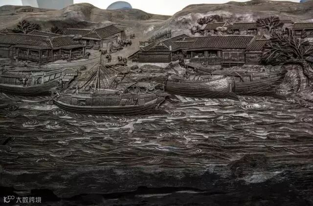 北宋汴河的水流急速,口岸繁华,来回劳动的苦力和口岸的船只都显示着雕刻师的功底多么深厚!