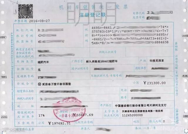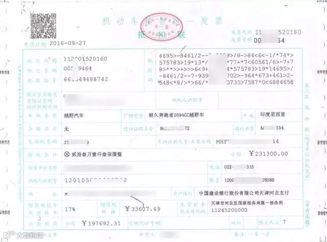 购车发票在上牌照的过程中非常重要!一定要小心保存。