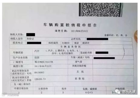 5、车辆基本信息表或车辆购置税缴纳申请表