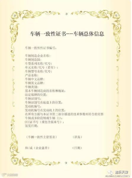 车辆一致性证书分为两面,背面为车辆的一些基本参数。