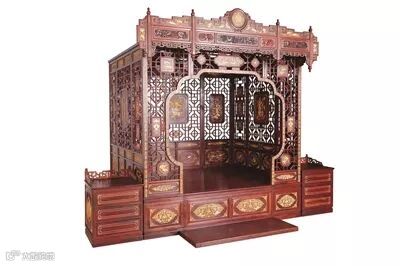 另一种是采用床柱、屏板和床顶构成屏架。