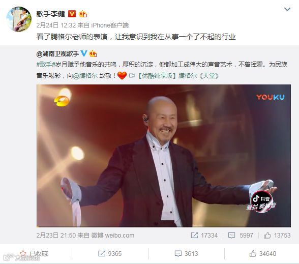 第七期《歌手》里,腾格尔以一首《天堂》震惊了结石姐,征服了观众。