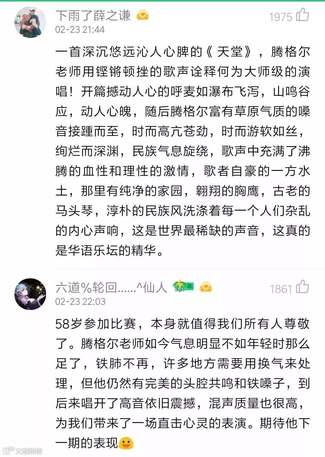 其后腾格尔似乎成了大家期待的神翻唱制造机,如最近在北京元宵晚会上和霍尊合作《我们不一样》。