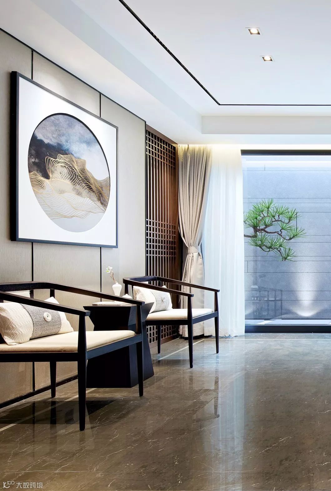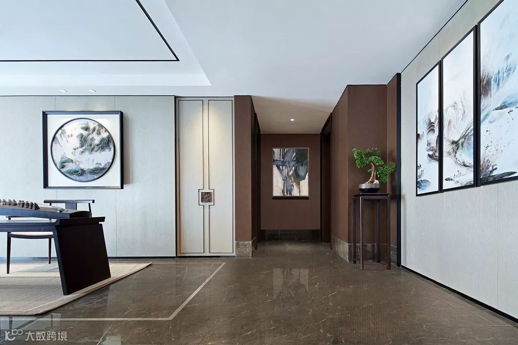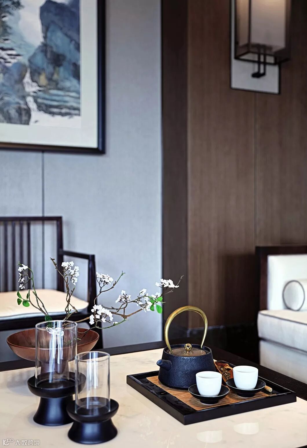 将传统中式的提炼和升华,也是对传统中式的尊重,设计师将东方美学用现代手法巧妙应用到空间中,把复杂的空间元素简练,给人一种沁润、意墨之境。