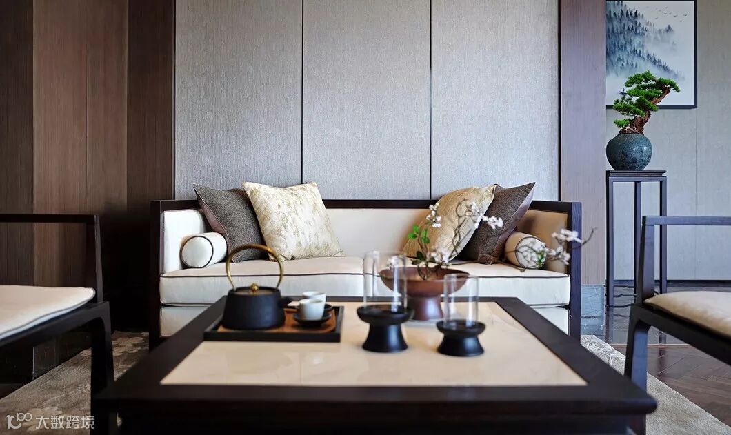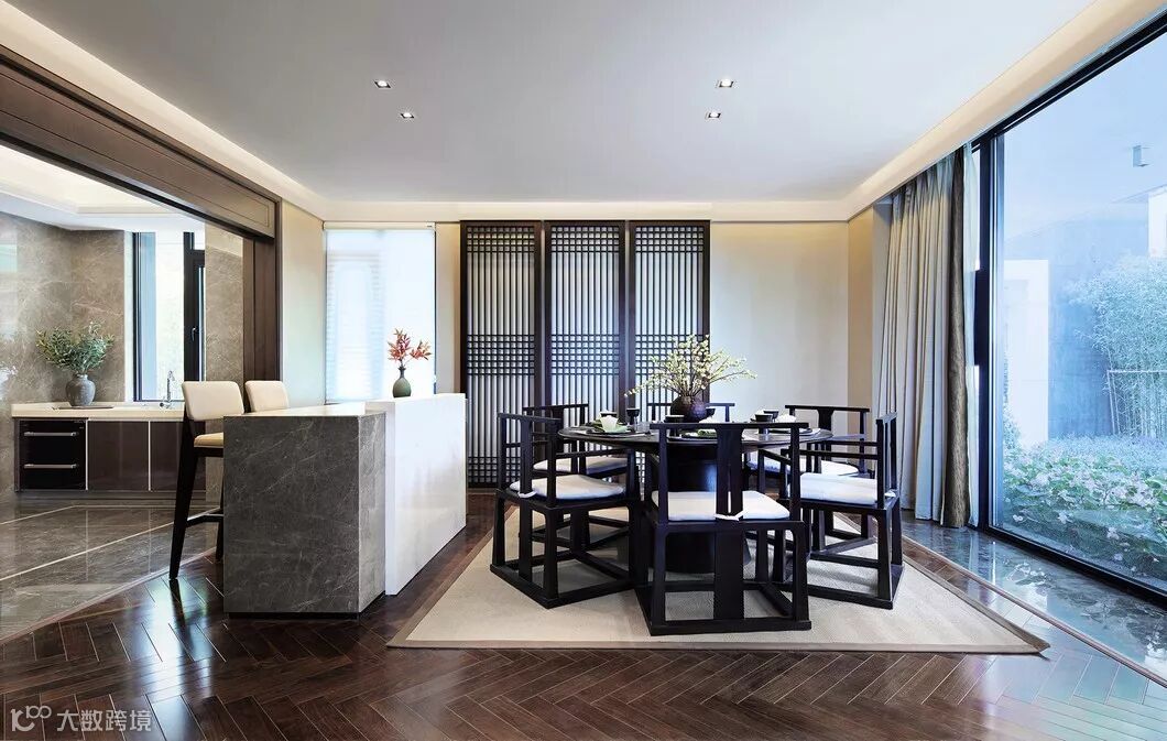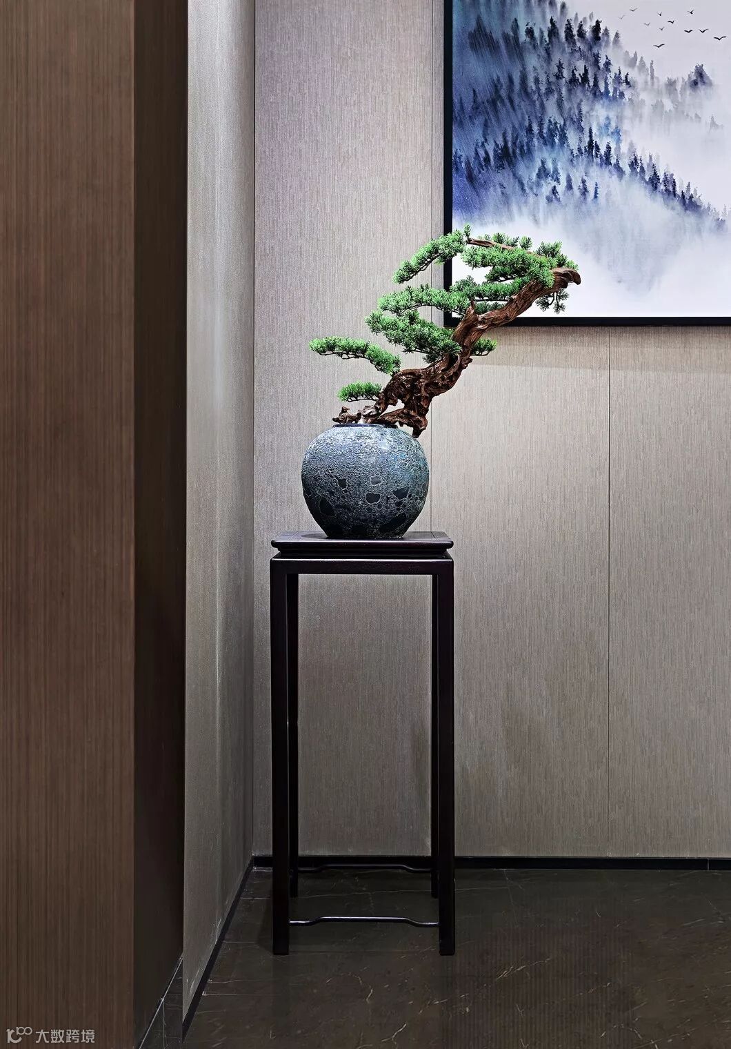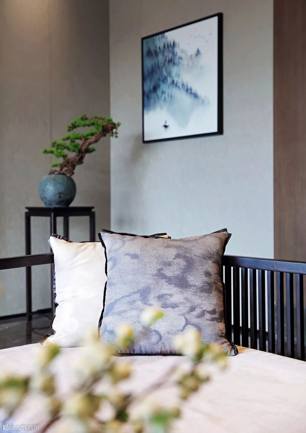 将传统中式的提炼和升华,也是对传统中式的尊重,设计师将东方美学用现代手法巧妙应用到空间中,把复杂的空间元素简练,给人一种沁润、意墨之境。