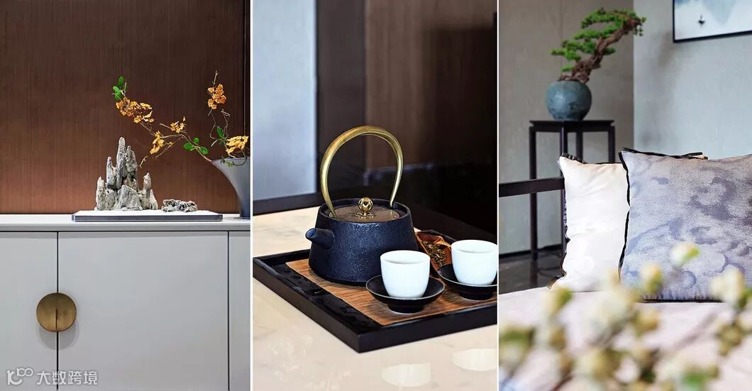 自然暗香的木纹,香槟高级灰的皮质,深邃高贵的灰蓝,在这里感受一茶一世界,一壶一人生东方优雅生活的高贵细腻。