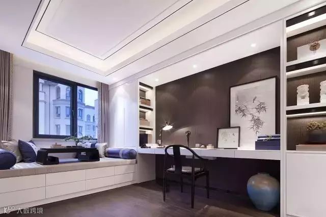 导读:素雅的色彩,简练的线条,中式的沉稳与自在就在这简单的几笔“轻描淡写”当中,中式的书房讲究谦和的气韵,就和读书