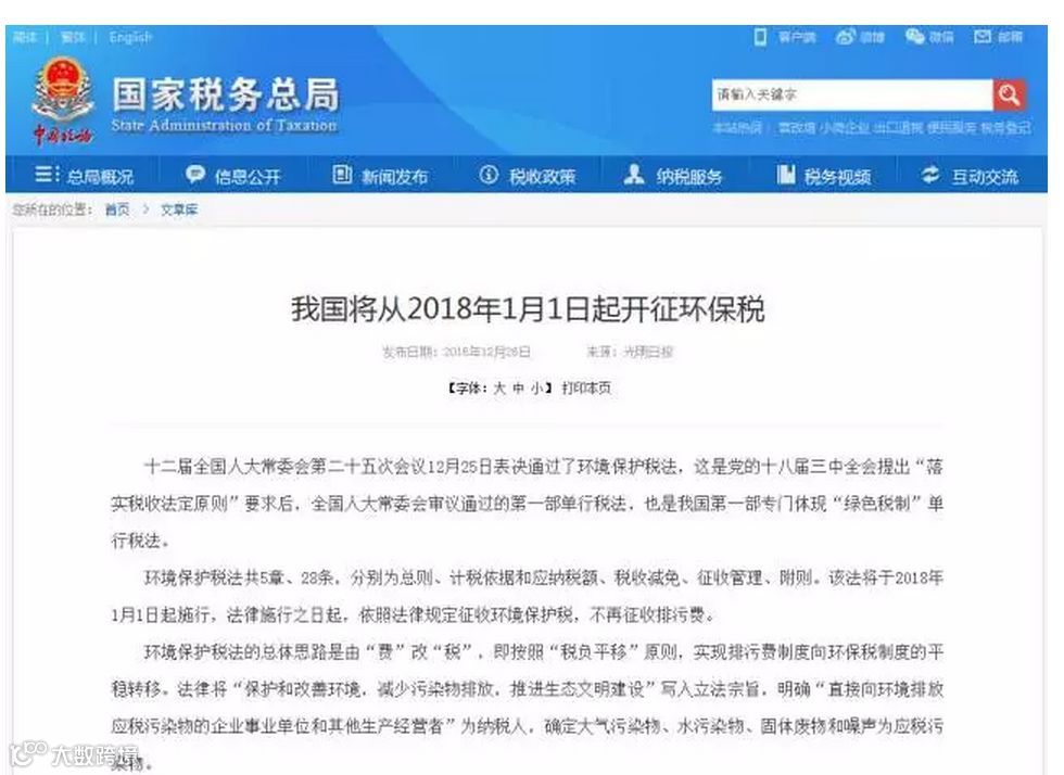 《中华人民共和国环境保护税法》将于2018年1月1日实行,这是我国第一部专门体现“绿色税制”、推进生态文明建设的单行税法,目前,各地基本上已明确环保税适用税额标准,做好开征准备工作。环保税实行的是定额税率,即多排多缴,少排少缴。