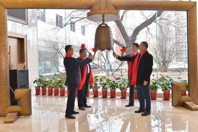 ▲广物控股集团董事、总经理、党委副书记林浩钧(右一)敲响开市宝钟