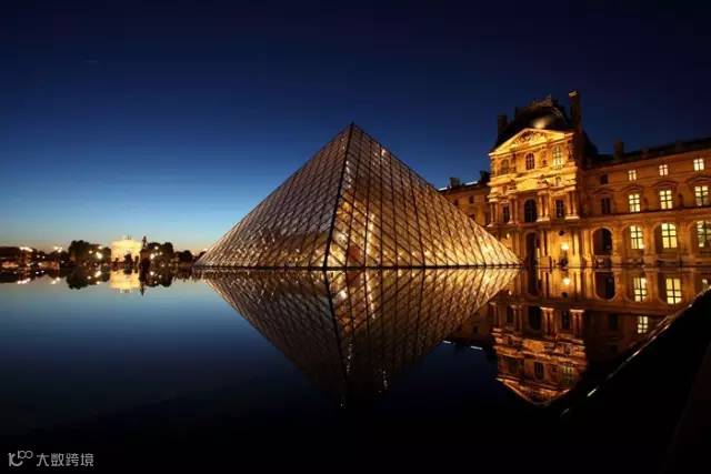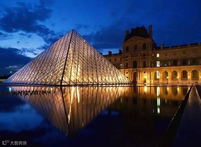 ▲卢浮宫正门入口处有一个透明金字塔建筑,它的设计者就是著名的美籍华人建筑师贝聿铭。