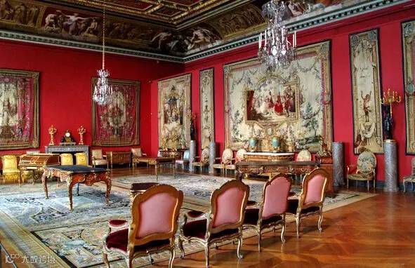▲凡尔赛宫500余间大殿小厅处处金碧辉煌,豪华非凡:内壁装饰以雕刻、巨幅油画及挂毯为主,配有17、18世纪造型超绝、工艺精湛的家具。