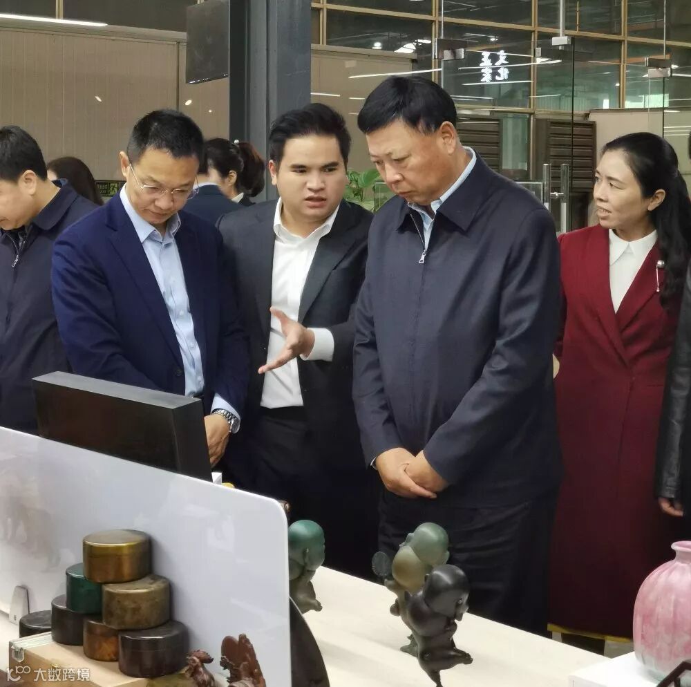 郭安书记一行参观了兴奇总部大楼、天奇铜带配送中心及兴奇铜文化新产业——正家文化。正家文化陈焕枝总经理向郭书记介绍了正家文化的企业定位、发展战略、核心技术等相关情况,并介绍了部分铜工艺品。郭书记肯定了正家文化的制作工艺、设计理念。随后,郭书记一行前往龙汇大厦,全面了解广东省有色金属交易平台的发展情况。