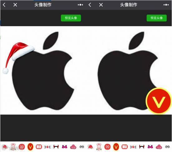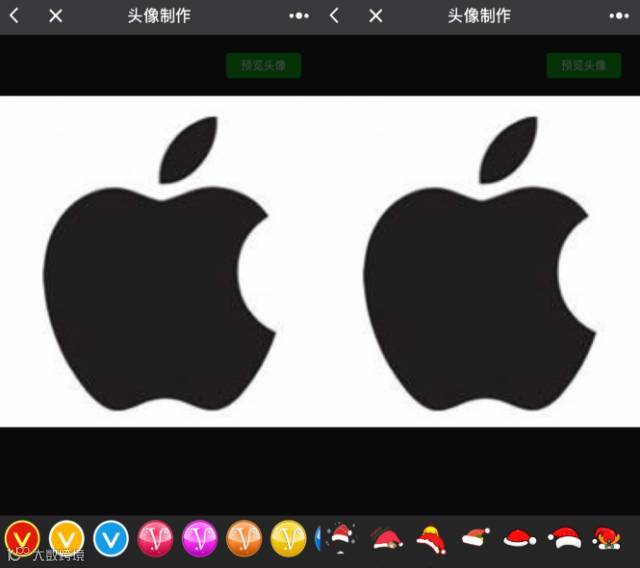 接下来就是头像制作了,包含了最近朋友刷屏的加圣诞帽,还有之前的头像加V,都可以在这里实现。喜欢这款小程序的果粉可以在咱们公众号:果粉之家 回复“108”即可查看。