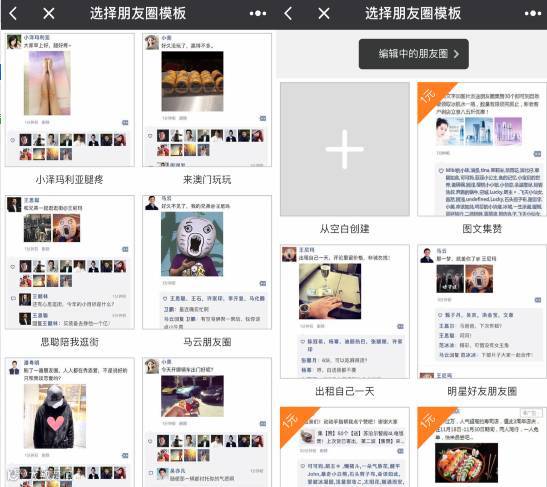 首先我们来试试朋友圈制作,可以制作朋友圈详情页和朋友圈首页,有已经建立好的模板,点进去后可以根据喜好来选择。如果没有自己喜欢的话,也可以自己重新建立一个。