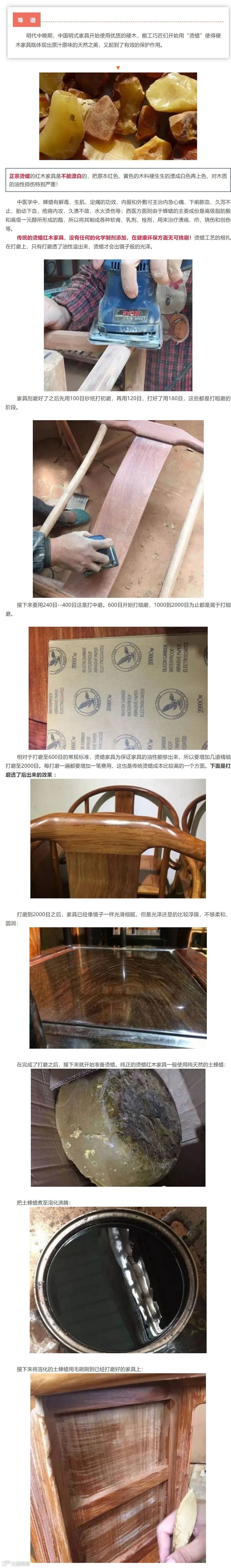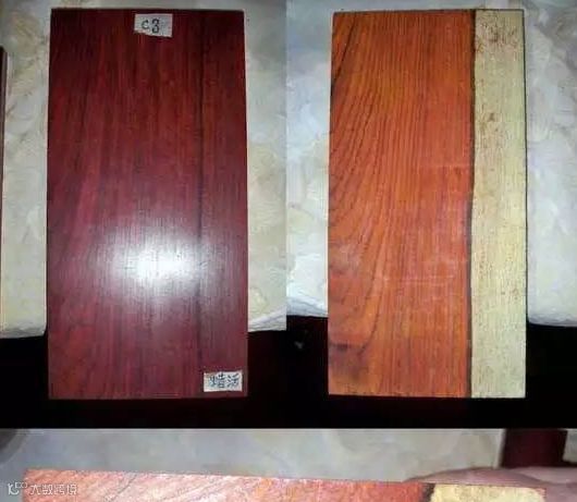 C3、顺色烫蜡:将有白皮的木料顺色后烫蜡,这种做伪技术也能使木料看起来美观大方,一般的消费者也是分辨不出的: