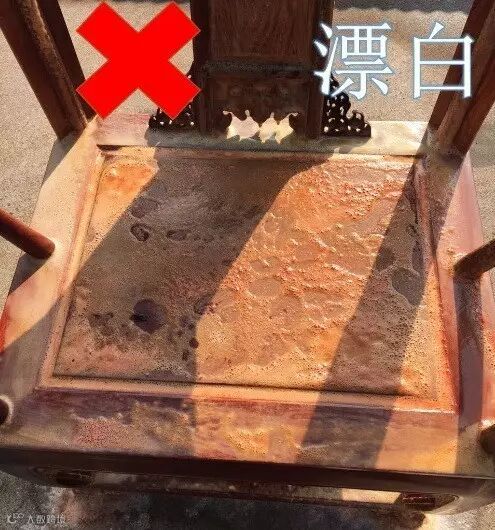 以下为木友提供的红木家具漂白照片:漂白对家具的的油性损害很大,家具没有油性就很难出包浆和亮度。