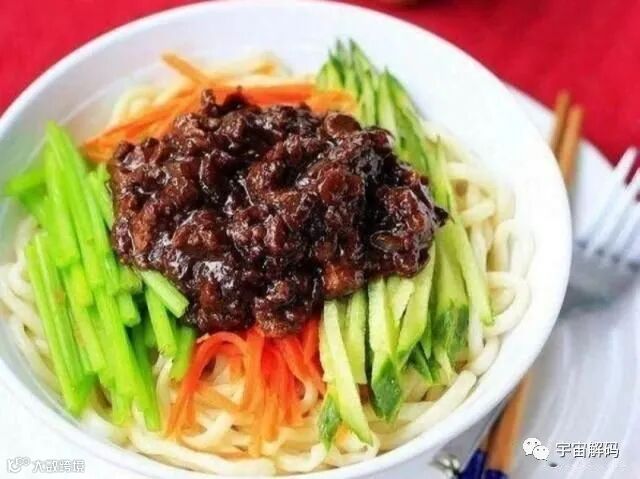 老北京炸酱面主要流传于北京天津一带,炸酱面摆盘精致,中间放面条,四周放上五颜六色的配菜,淋上用五花肉和黑豆酱炒至的特色炸酱,拌匀后,就可以享用了。炸酱面的特色主要在炸酱上,面条最好是手擀面,很多人吃的时候就上一瓣大蒜,味道香而不腻,吃上停不下来。