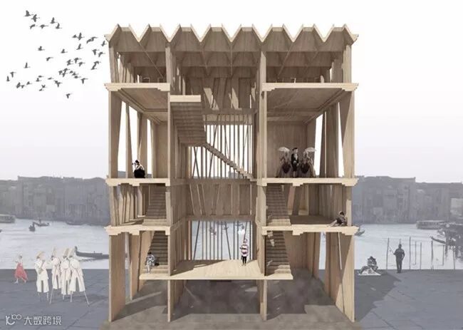 他们的目的是证明木材是一种多用途的材料,同时由于气候变暖和海平面上升会威胁到类似威尼斯这种沿海城市,因此要促进木材的可持续性。