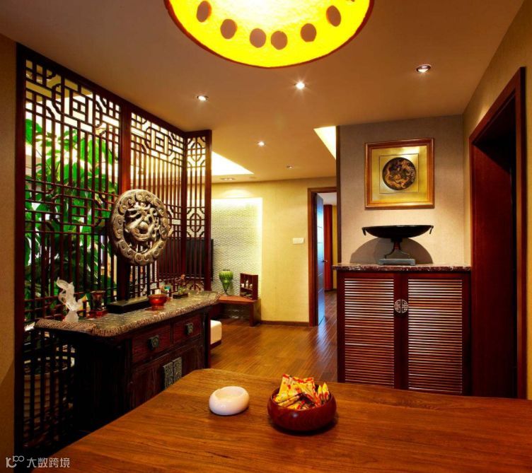 如莲花,狮子,鱼,龙凤,金钱等图案,也可在玄关里摆放与这些图有关的饰物。