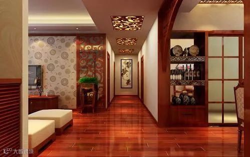 墙壁间隔之间应下实上虚,面对大门的玄关下半部应以良好的砖墙或木板来进行装修,作为模板,上半部装修可以明亮的装饰材料如磨砂玻璃。