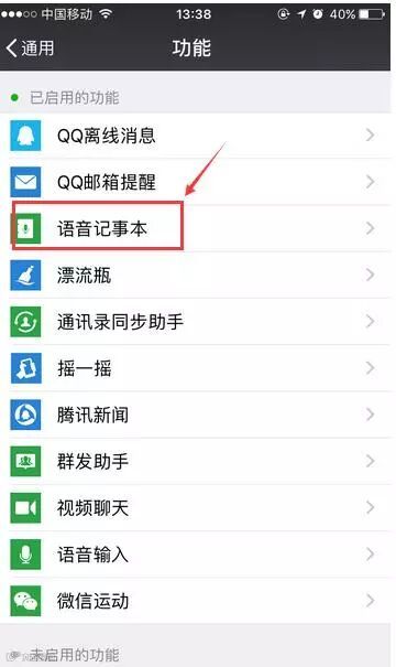 依次点击【我】—【设置】—【通用】—【功能】,选择【语音记事本】,选择关闭。