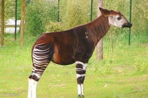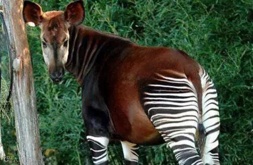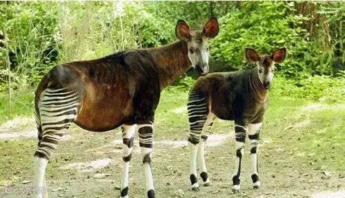因为后部有黑白交加的条纹,让这种动物一眼看上去很像一匹斑马。但是在前面看的话,就会觉得它和长颈鹿长得很像。所以在过去之时,一些人还以为它是长颈鹿和斑马杂交的产物,但实际上它与斑马并没有什么亲缘关系,与长颈鹿是近亲。