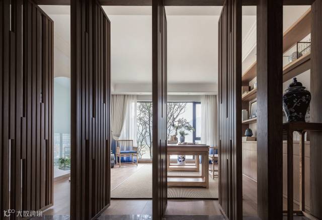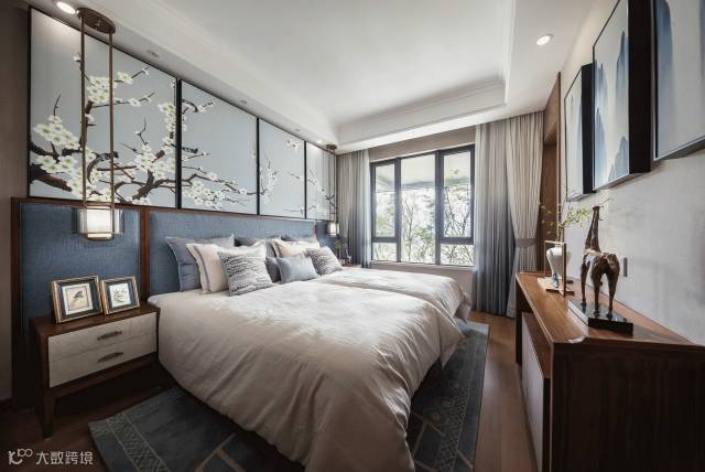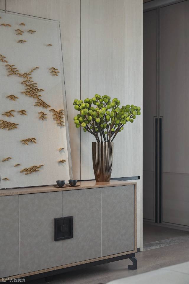一个内敛深沉、矜持冷静,一个婉约典雅、恢弘大气。高级灰与新中式的完美结合,共同演绎东方文化精粹。新中式家具搭配上高级灰底色的纹理壁纸,瞬间提升空间格调。